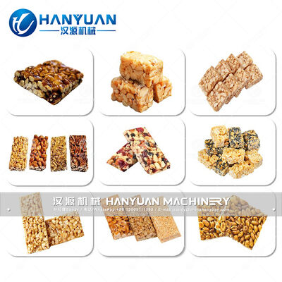 Key: HANYUAN MACHINERY specializes in the production of Food Making Machine,Peanut Candy Chikki Bar Production Line, Molding Machine, Packing Machine, Nutrition Cereal Bars line, Rice and Nuts Bar Moulding Line, Caramel Treats Line, Oatmeal Chocolate Line, and other kinds of food machinery.