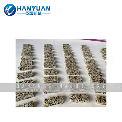 HANYUAN Automatic Rice Bar Making Machine is designed for industrial production of crispy candy bars including sunflower seeds candy bars, sesame candy bars, puffed rice bars, and Shaqima. The complete system covers cooking of adhesive materials, mixing of dry and adhesive materials, forming, cooling, cutting, metal detection, and pillow packaging.
